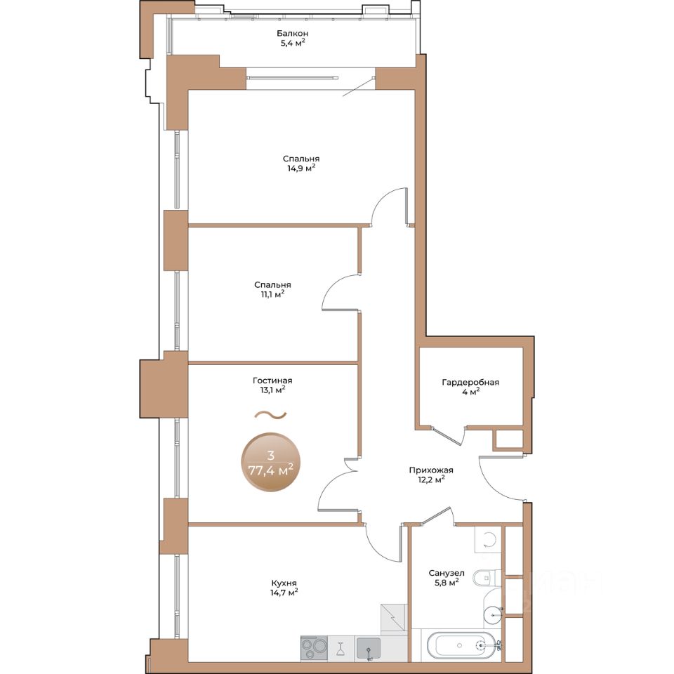 продам 3-к, Партизана Железняка, 35а/113 777 200 ₽